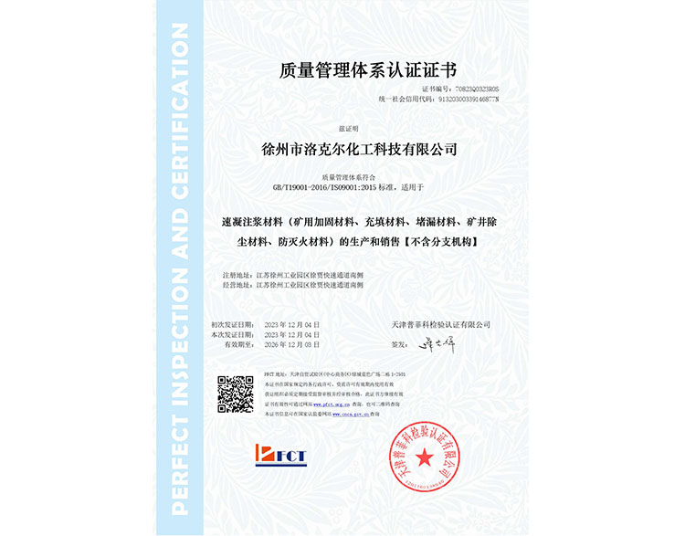 质量管理体系认证证书
