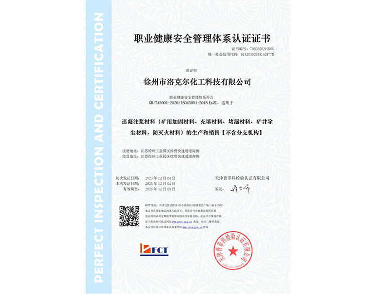 职业健康安全管理体系认证证书
